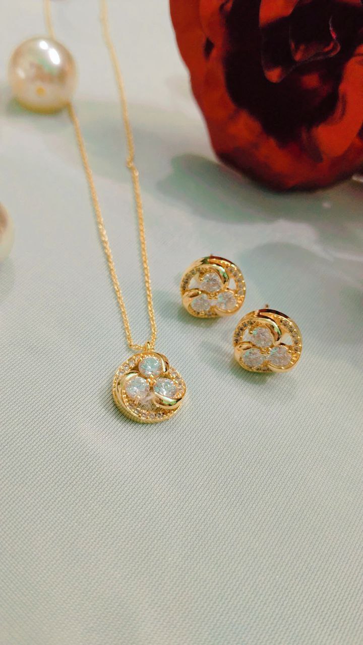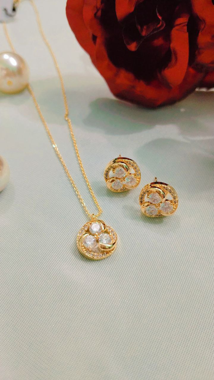 Anti-Tarnish American Diamond Pendant Set with Earrings | Hypoallergenic & Waterproof