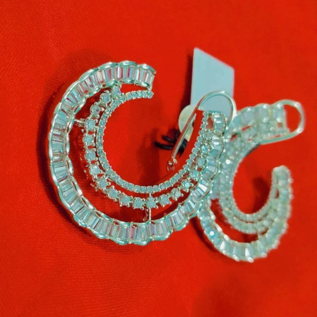 Elevate your style with these chic silver hoop earrings, designed with a modern layered look. Featuring a dazzling combination of baguette and round crystal accents, these hoops strike the perfect balance between sophistication and glamour. Ideal for both day and night, they add a refined sparkle to any outfit.
