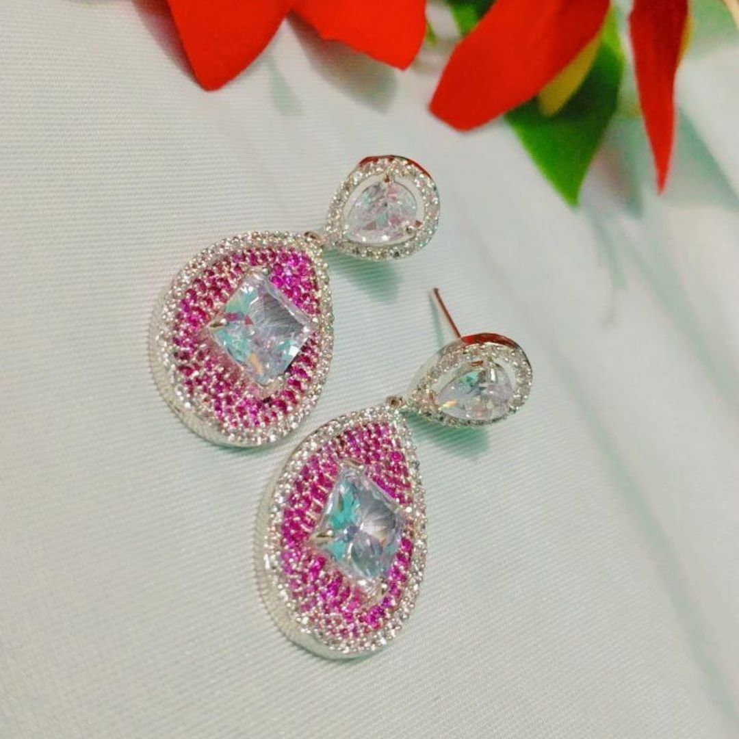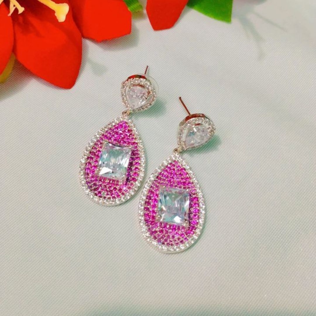Be the first to review “Pink Teardrop American Diamond Earrings”
