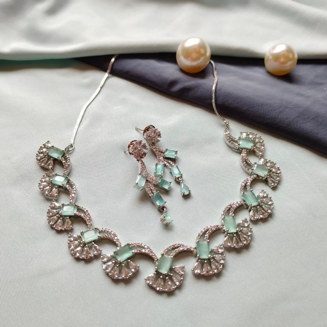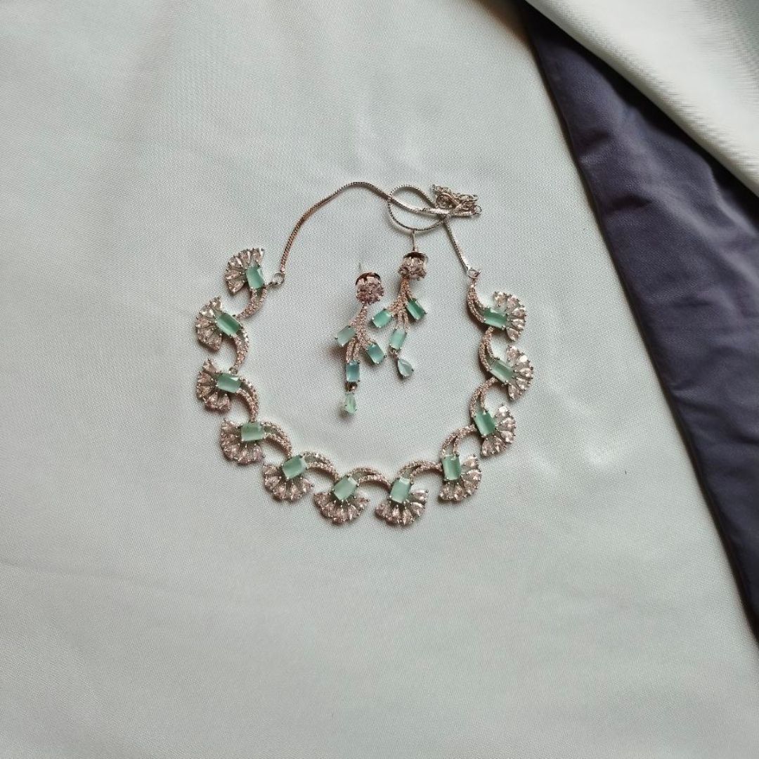 Be the first to review “Sleek Brass Necklace with American Diamonds”